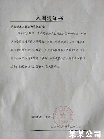 我公司入围陕西延长石油(集团)有限责任公司造价审计中介机构公开入围项目